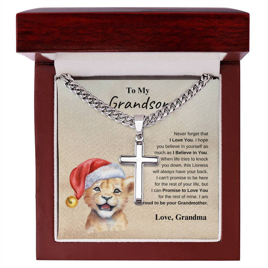 To My Grandson Love Grandma | Cuban Link Chain with Artisan Cross