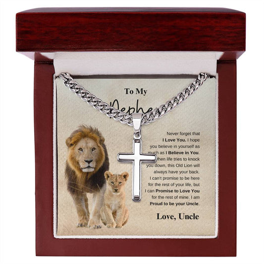 To My Nephew Love Uncle | Cuban Link Chain with Artisan Cross