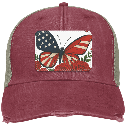 Fourth of July Butterfly Distressed Cap